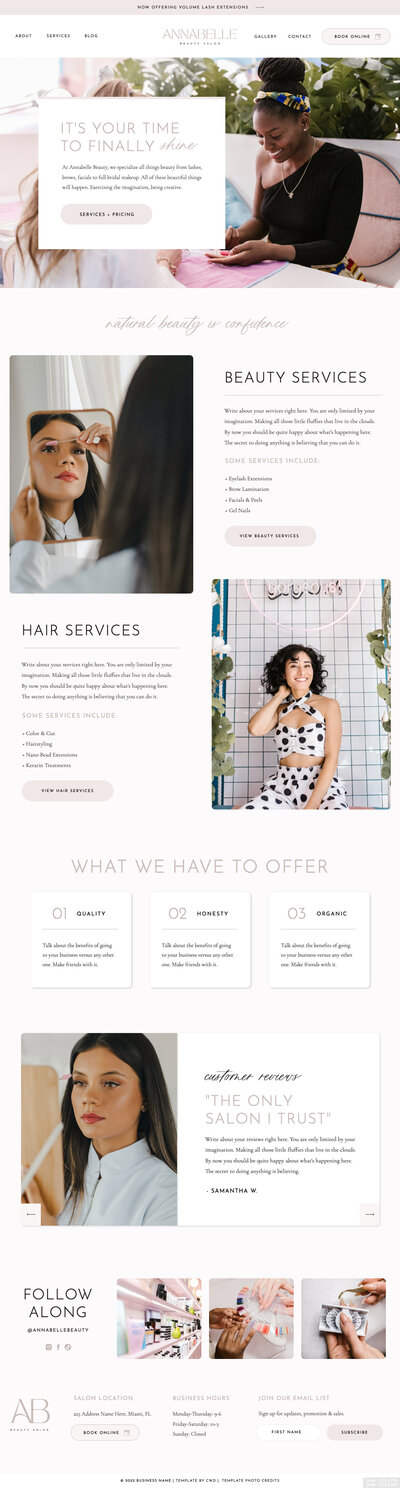 Showit makes it easy for cosmetic, skincare, hair salon, med spa, and makeup artists to build a website, all without the need for code.