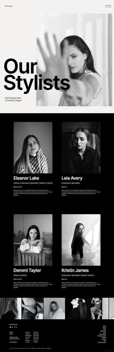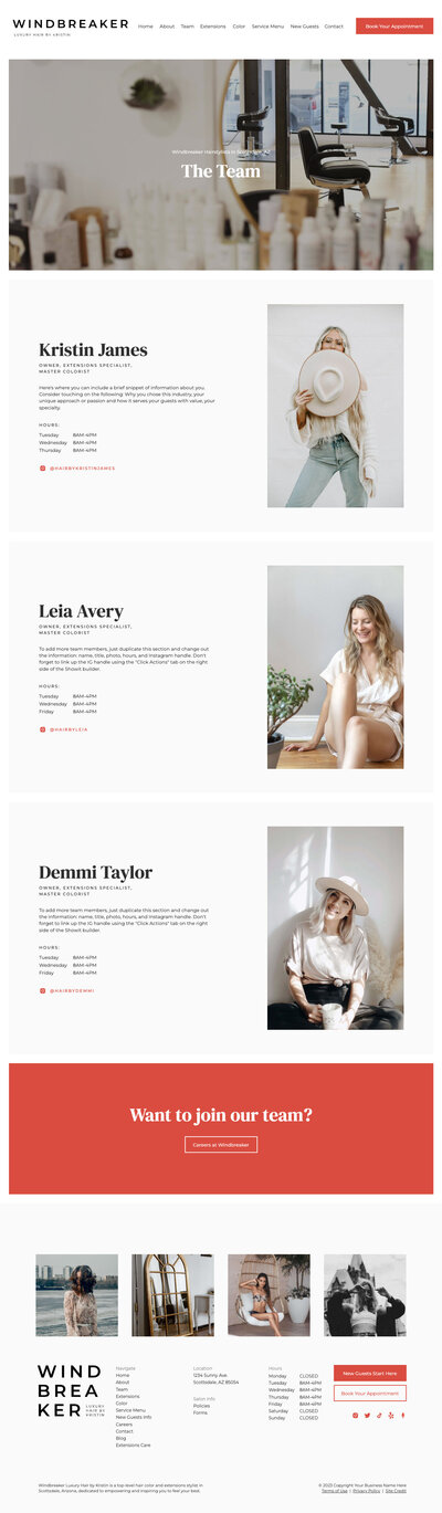 Showcase your business' human side with team profiles–listing expertise and awards to build credibility. Allow clients to directly book appointments with their favorite team member.