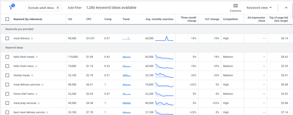 To give you an idea of what you would find there, here are some suggestions I was provided when searching for ‘meal delivery.’