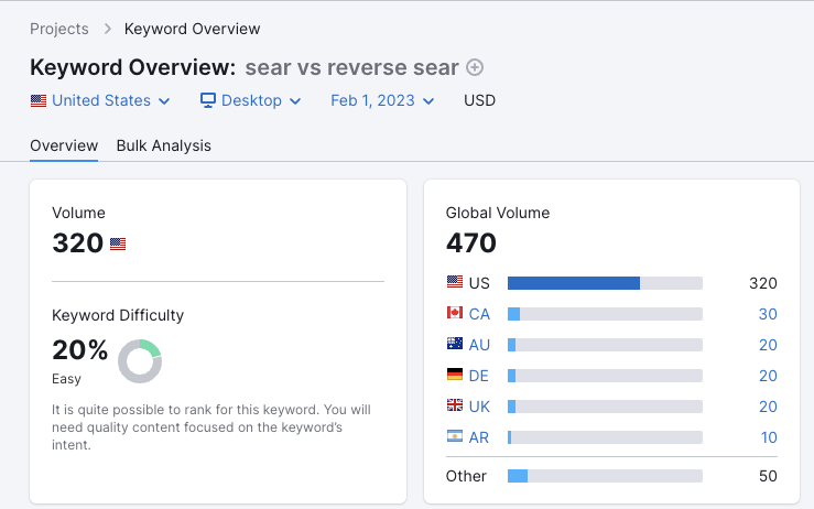 For instance, if I am searching sous vide vs. reverse sear, I am probably looking for an informational article that explains the difference between the two cooking methods. However, searching sous vide machine is a transactional search—in other words, I am looking to purchase a sous vide machine rather than read about sous vide machines.