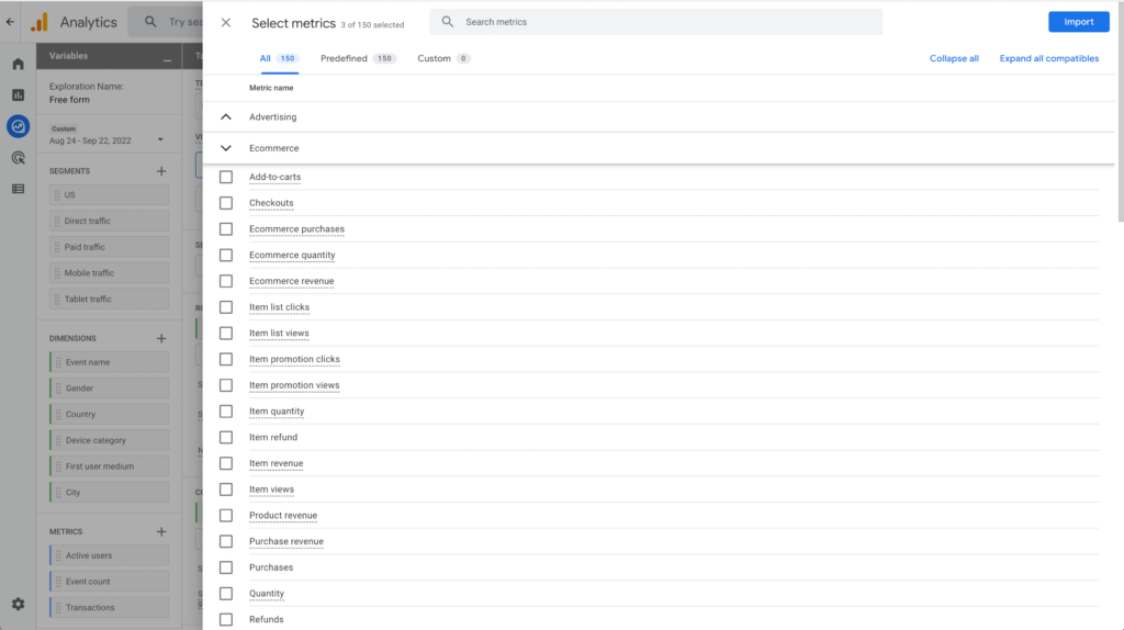 We're going to create a new “Free Form” exploration which just means we're going to be telling Google what we are looking for specifically.