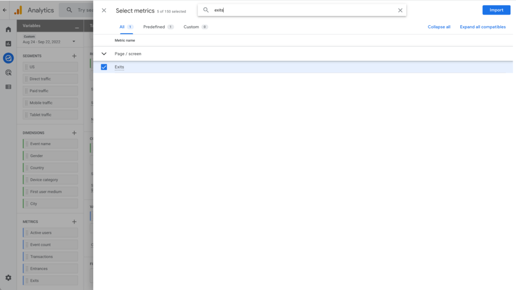 In the search field, first type in Exits. You should see that long list dwindle to just one option. Select that (Exits) and click the big blue IMPORT button