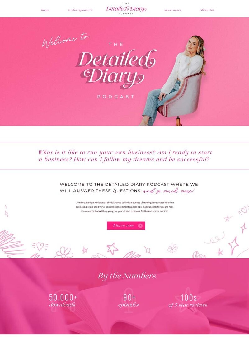 Using a free template we customized elements and made our very own podcast site.