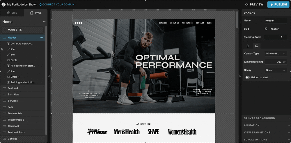 In Showit, users are given more freedom to make creative decisions, giving them greater control in placing elements wherever they'd like to create beautiful, high performing websites that connect with their ideal clients.