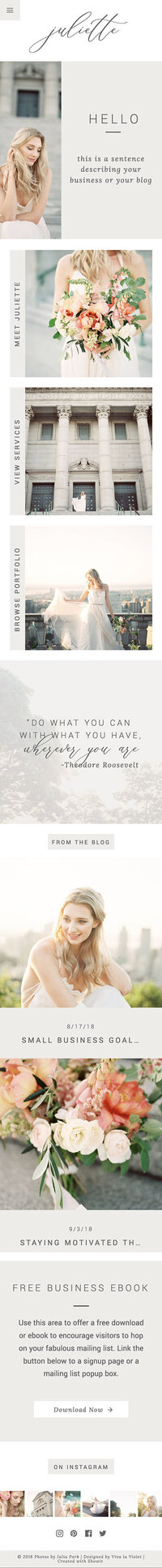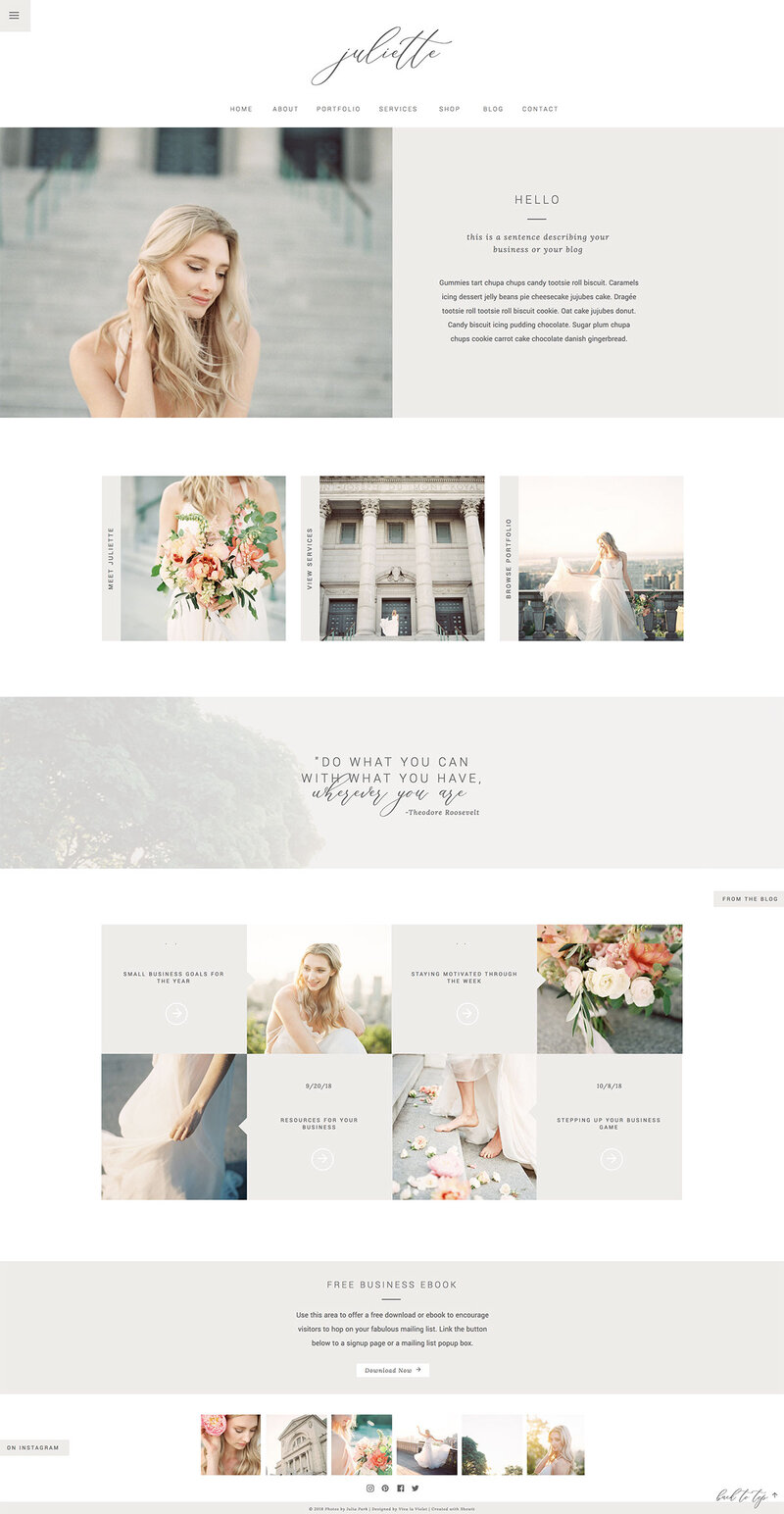 images are an example of a Showit website, not a WordPress site. This design is Juliette by Viva La Violet.