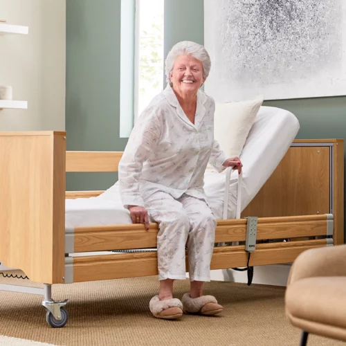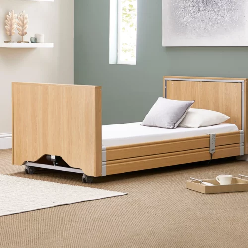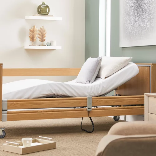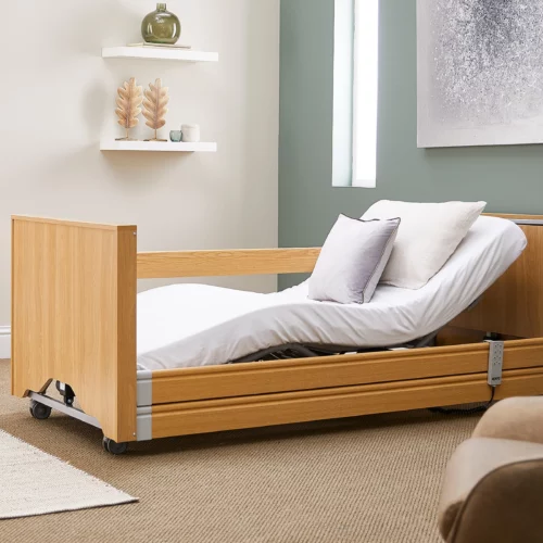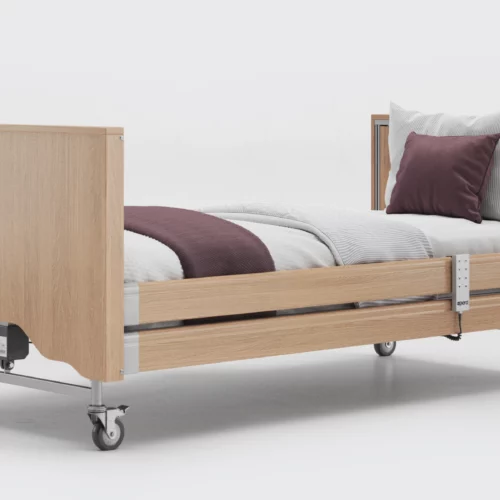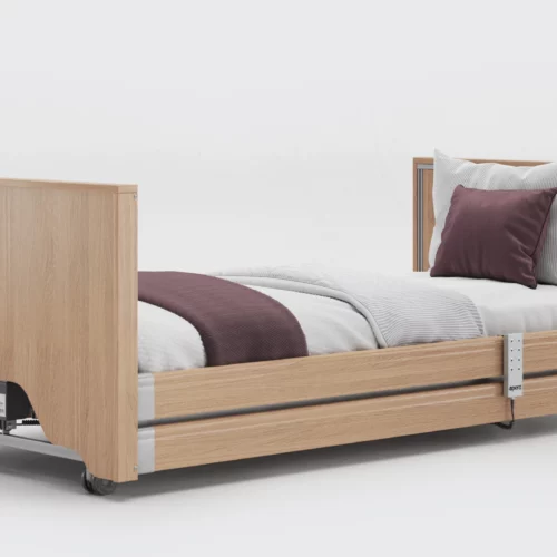 Discover the timeless elegance and versatility of the Classic profiling bed, designed to seamlessly blend practicality with functionality. Encased in a charming wooden frame, this bed can be equipped with optional side rails for enhanced safety. The Classic bed effortlessly elevates to waist height, facilitating on-bed care, and lowers for easy access. Tailored for individuals with limited mobility or disabilities, it offers unparalleled comfort through adjustable back and leg support.