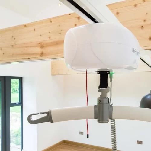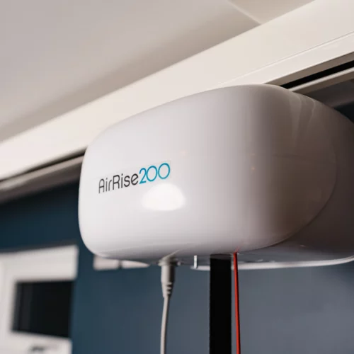 Any ceiling lift system requires a hoist unit, and our AirRise range is among the best available. With quiet, smooth-rolling twin trolleys, our AirRise units handle turns and corners with ease and comfort. The AirRise range also features soft-start and soft-stop technology, ensuring patients and users experience no jerky movements. These units have Battery Protection Software, which helps maintain batteries in good condition long-term and alerts you when they need charging! Our AirRise units come in different models and weight limits. The number at the end indicates the number of kilograms the unit can lift. Choose from the following: AirRise200, AirRise275, AirRise350, AirRise500.