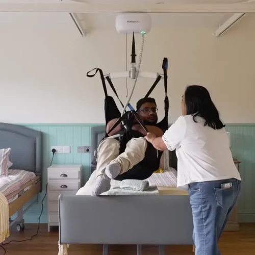In patient handling, our Ceiling Hoist Systems are top-notch, providing safe and efficient transfers in care settings. Our Air Rise and Airglide360 ceiling lift systems, designed and installed by our team, set new standards in patient handling. The Airglide360 track system is integrated into the ceiling, keeping a non-clinical look, improving infection control, and offering flexibility for full room coverage. Our wall-mounted hoist systems are a quicker installation option, ideal for high ceilings or limited floor space. Paired with the Air Rise hoist units, which have quiet, smooth-rolling twin trolleys and soft-start/stop technology, we make patient handling safer and more comfortable.
