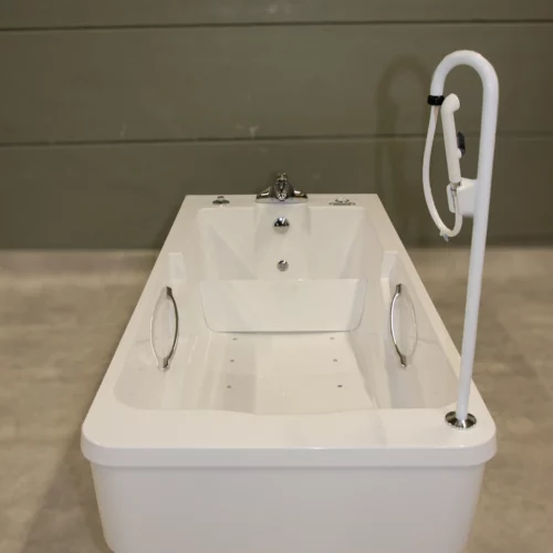 The TR Spaceline is a freestanding, height-adjustable bathtub designed to provide a relaxing and satisfying bathing experience. Its extra width accommodates plus-size users and offers additional space for users who want to practice movement within the tub.