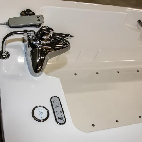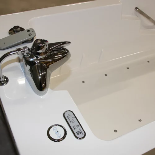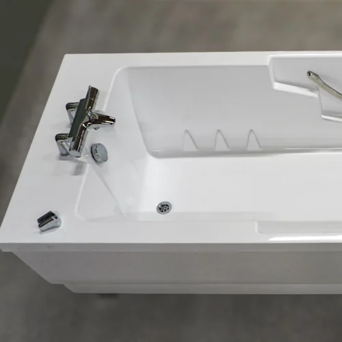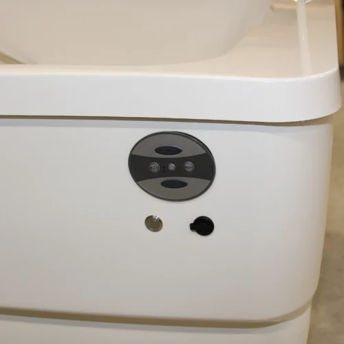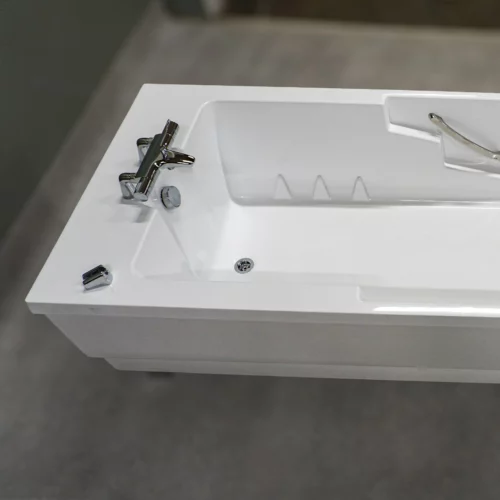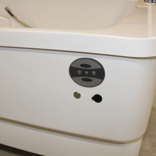The Spaceline bathtub offers a variety of sensory features, including an LED lighting system, a music sound wave system with four speakers, AUX and Bluetooth connectivity, and a 12-jet air-spa system. Bathing in this tub is a soothing experience for both the body and mind, enhancing residents' wellbeing, supporting skin therapy, and providing a calming atmosphere. The bathtub is accessible from either side, and its ergonomic design and efficient bathing cycle are advantageous for attendants. An evolution of the popular Comfortline, the Spaceline boasts additional width and length, accommodating a maximum user weight of 250 kg. Its straightforward installation allows it to fit seamlessly into most central bathing areas or bathrooms. The controls are designed for ease of use, and the smooth design ensures easy cleaning and maintenance.